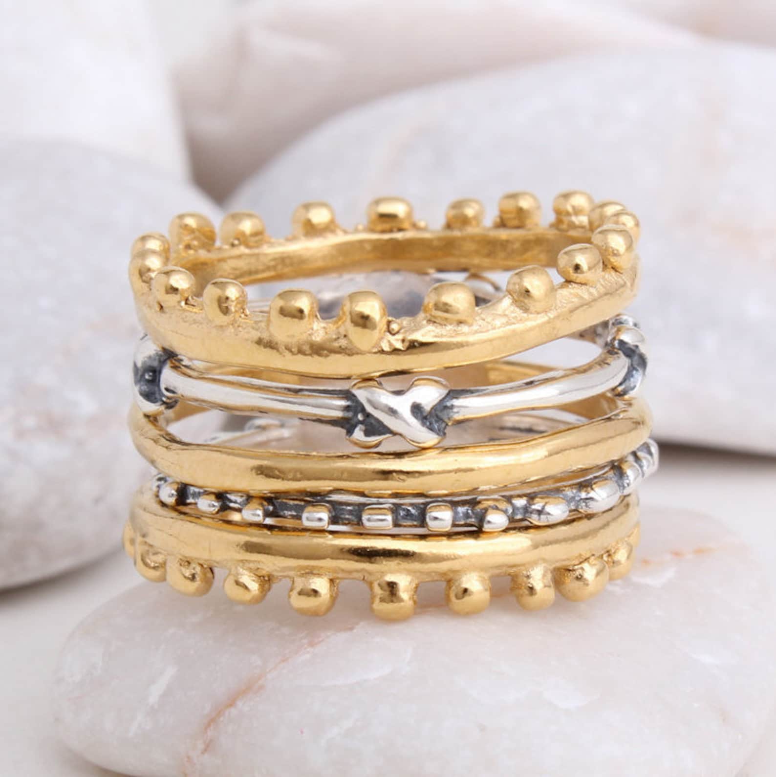 Statement Mixed Metal Stacking Rings, Gold and Silver Ring, Handmade ...