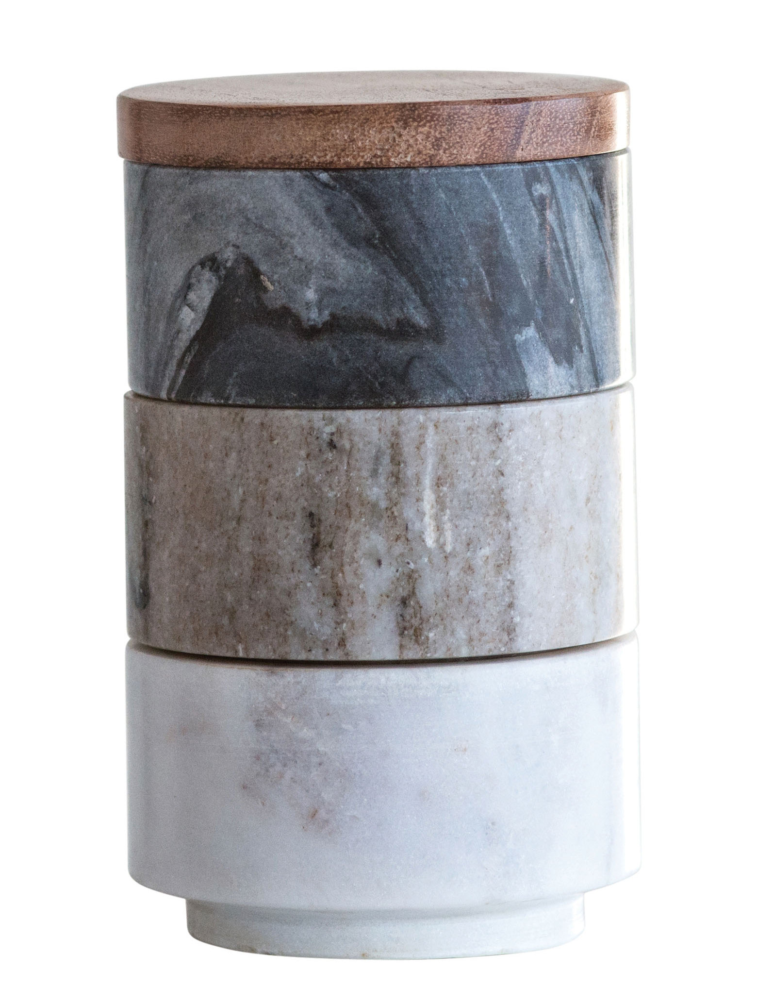 Gray & White Marble Stacking Salt Cellar with Wooden Lid