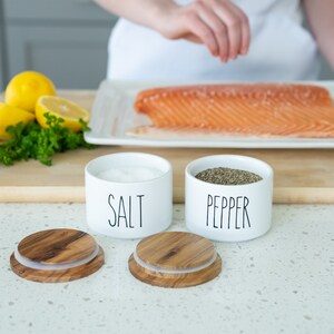 Heartland Home Ceramic Salt Cellar Set With Acacia Wood Lids. White and ...