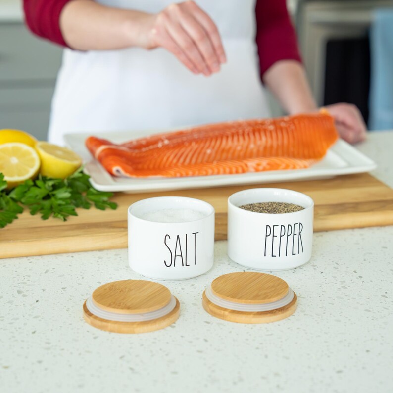 Heartland Home Ceramic Salt Cellar Set With Bamboo Lids. White and ...