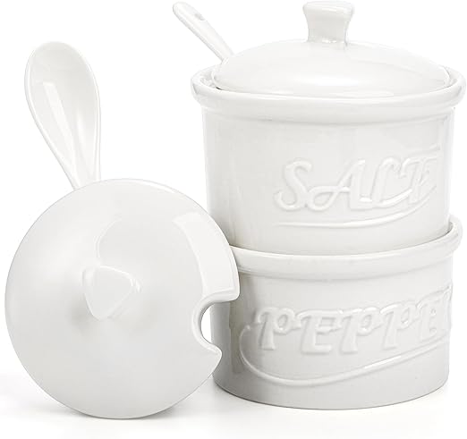 Amazon.com: Hacaroa Set of 2 Ceramic Salt and Pepper Cellar with Lid ...