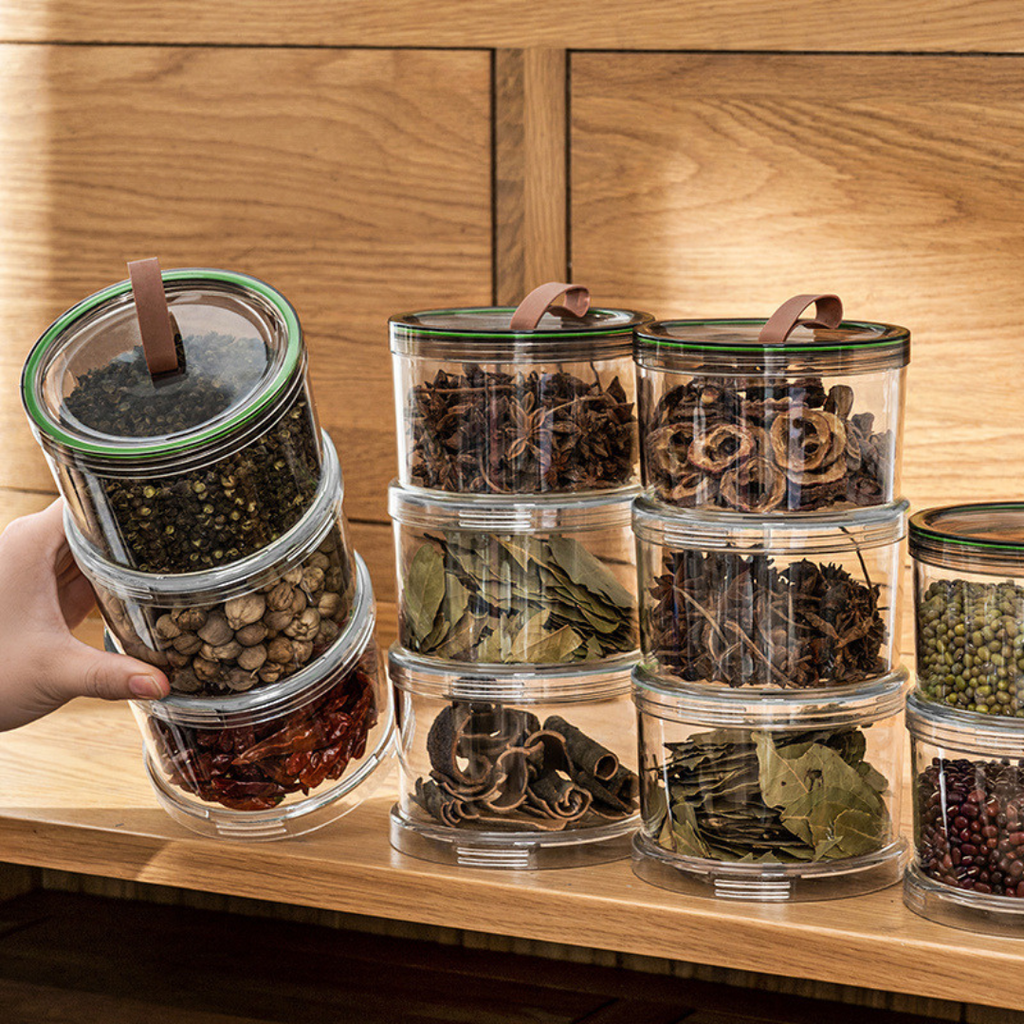 Stackable Clear Acrylic Canisters for Kitchen Spice Storage