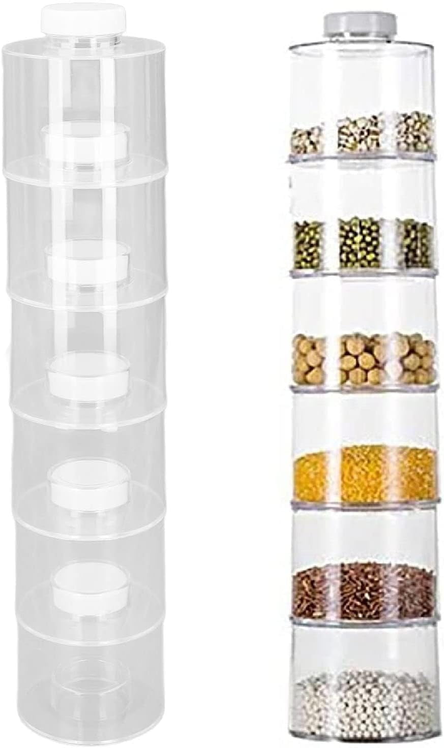 6PC Stackable Spice Tower Storage Jars Set for Kitchen Organization ...