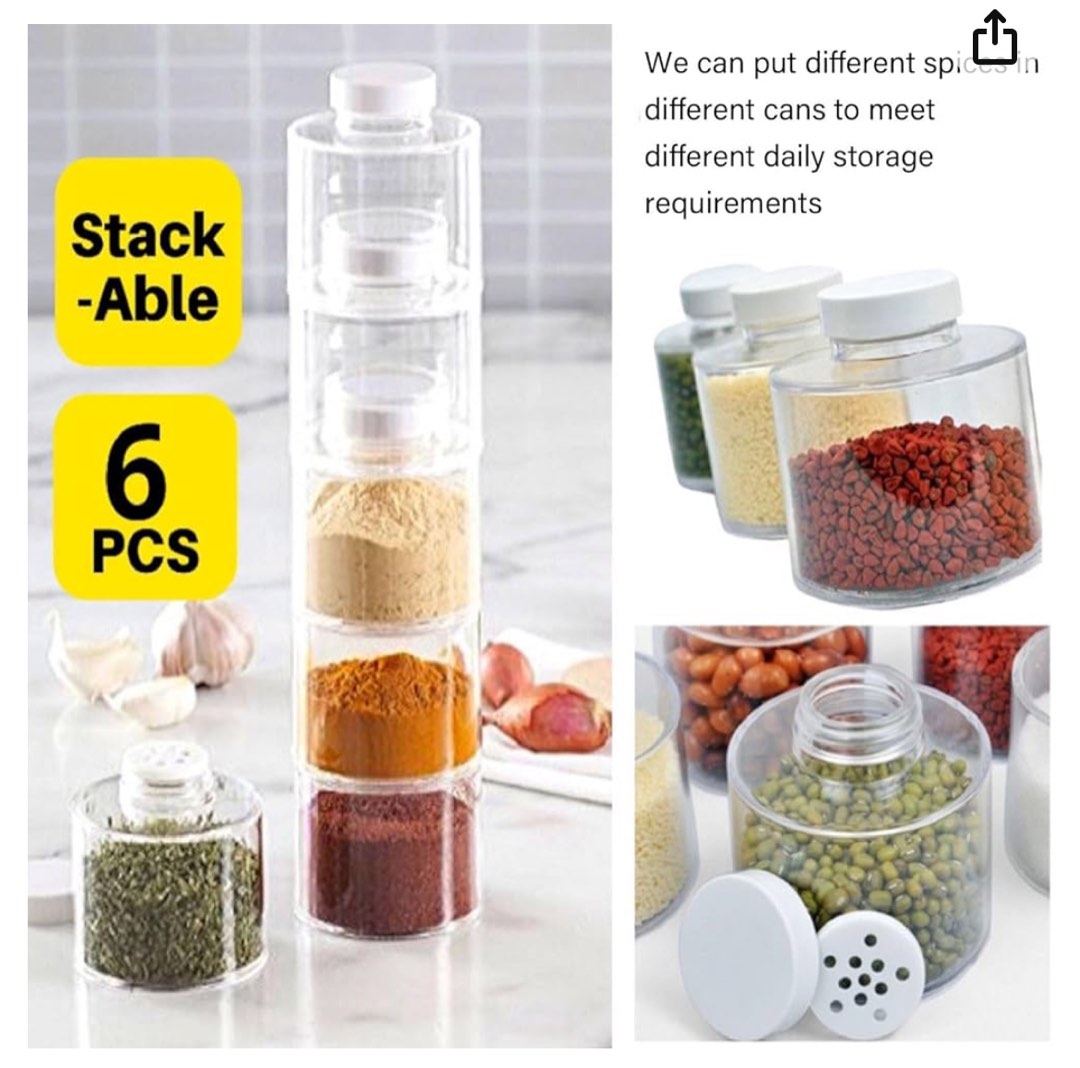 6-Piece Stackable Transparent Spice Storage Jars, Shatterproof Kitchen ...