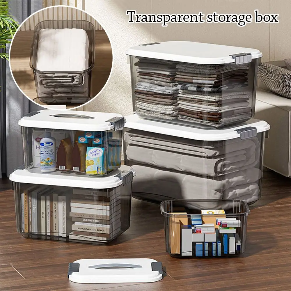 Transparent Storage Box Organizer with Lid, Gray Plastic Desktop ...