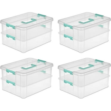 Creahaus 3 Layer Plastic Stackable Storage Boxes with Lid & Carry ...