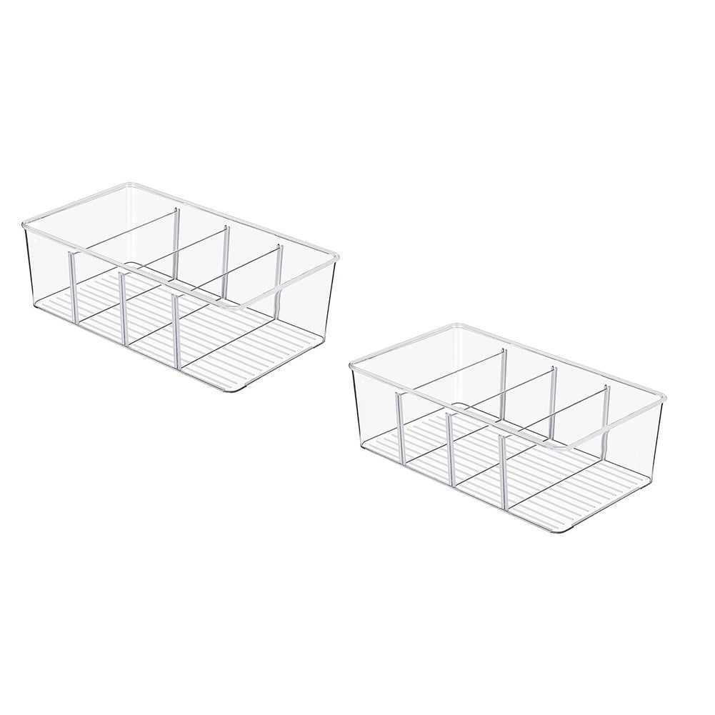 1-Pack Clear Stackable Plastic Organizer Box with 6 Removable Dividers ...