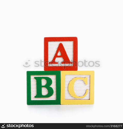 Stacked wooden blocs with ABC isolated over white Stock Photo - Alamy