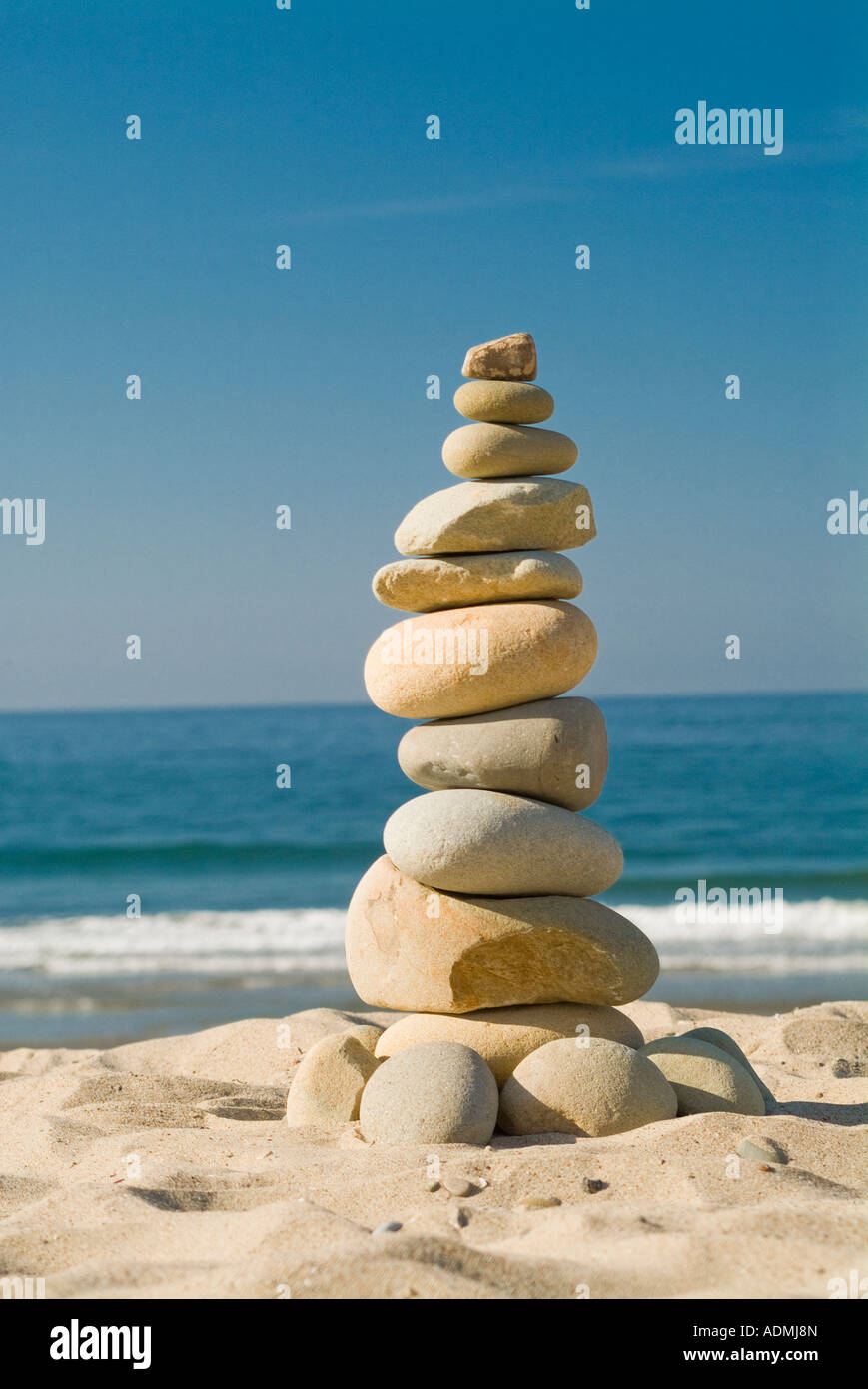 Stacked and balanced beach rocks Stock Photo - Alamy