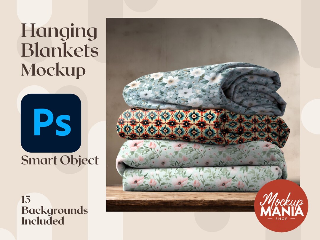 Minky Blanket Stacked Mockup PSD Smart Object Stacked Blanket Template ...
