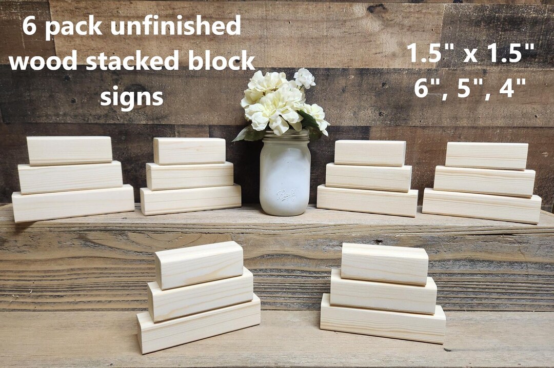 6 Pack of Unfinished Wood Stacked Block Signs / Tiered Tray Decor / DIY ...