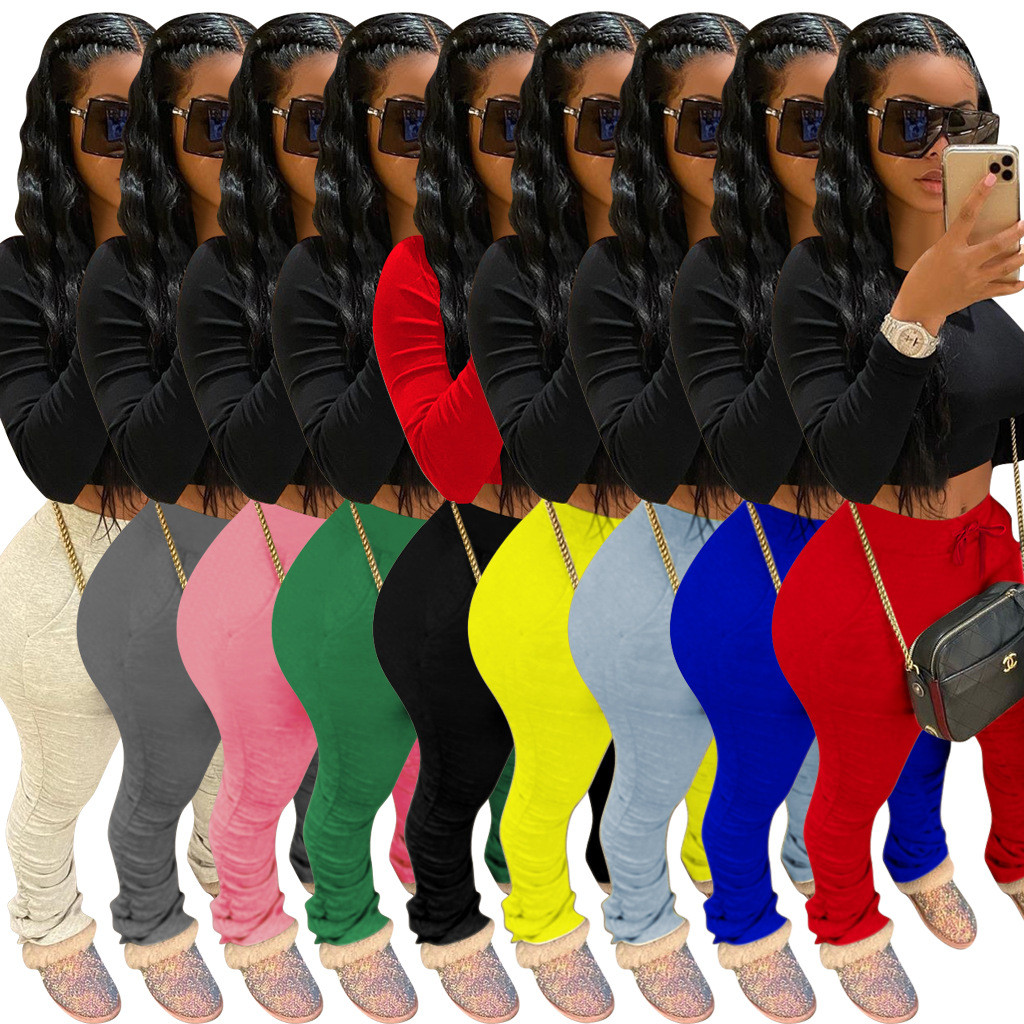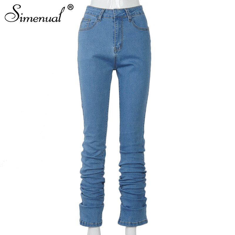 Simenual Ruched Denim Blue High Wait Stacked Pants... – Grandado