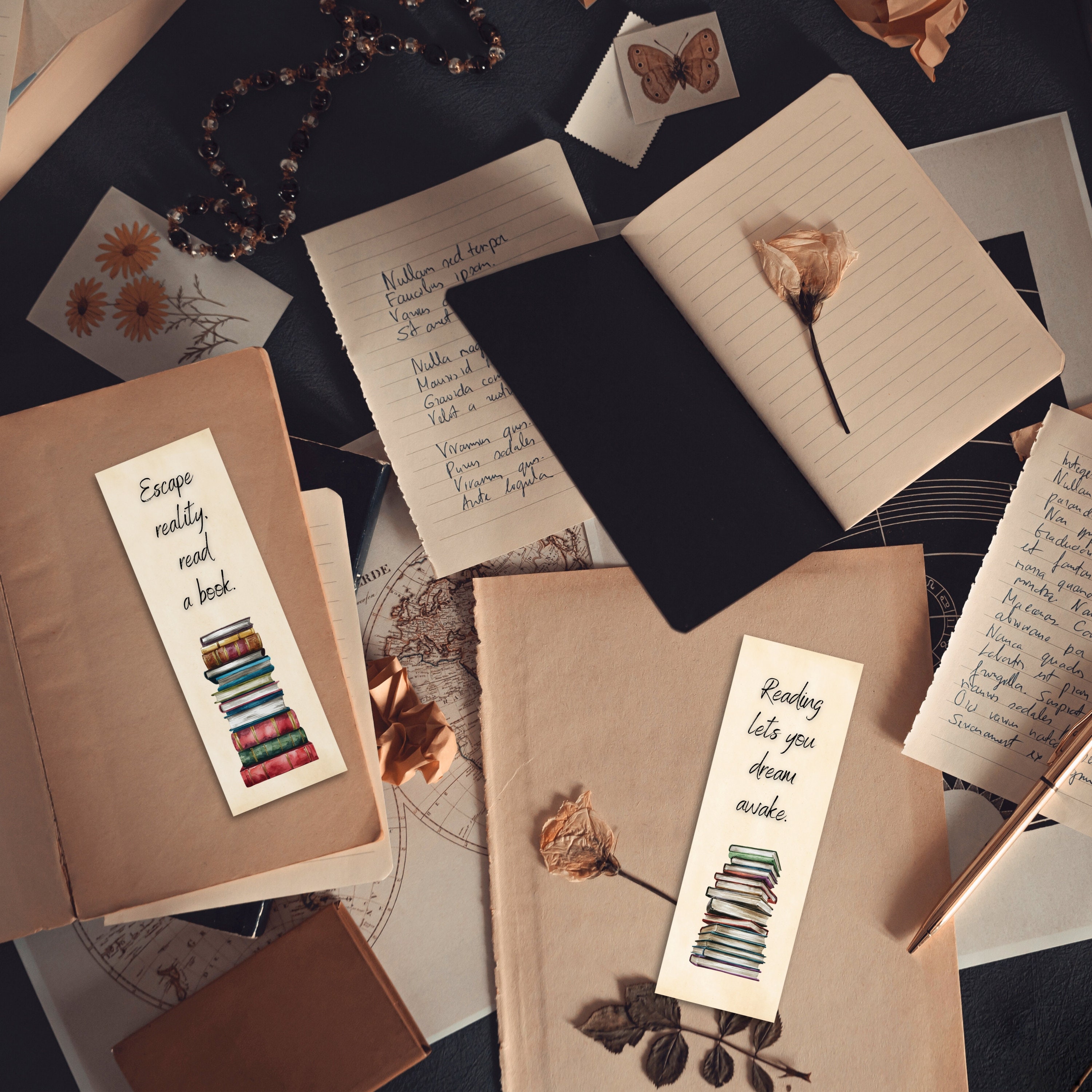 Stacked Books Bookmarks Printable for Book Lovers, Book Stack, Literary ...