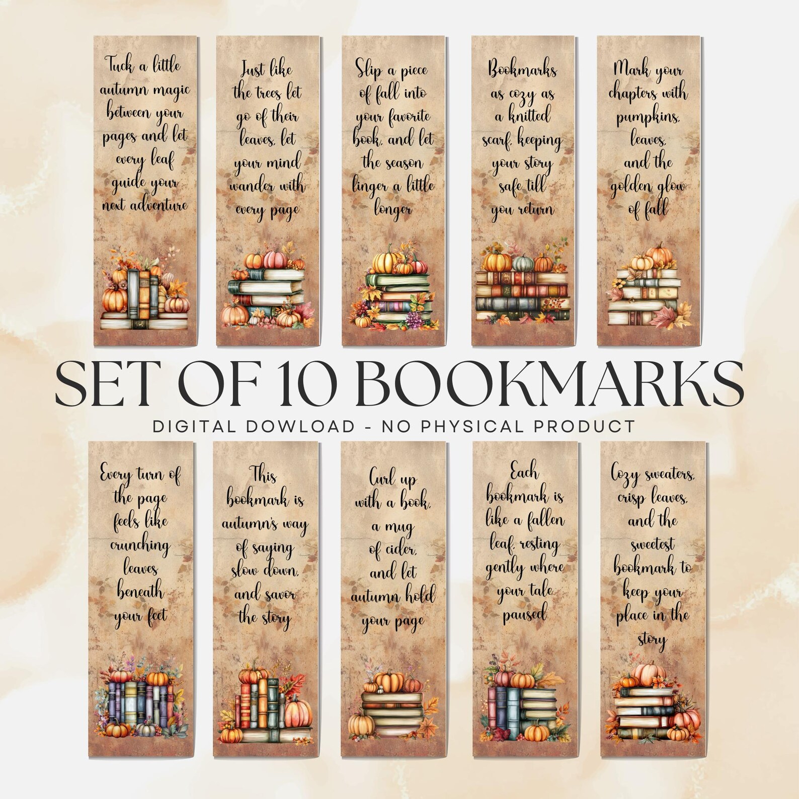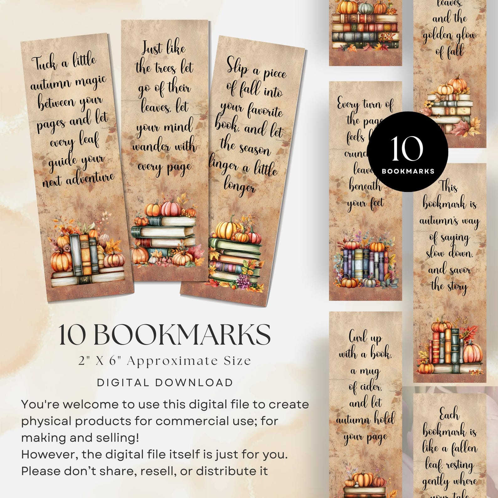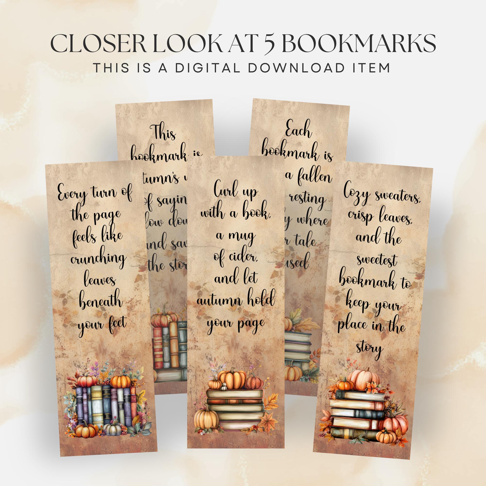 Autumn Stacked Books Bookmarks: Book Lover Gift, Print & Cut (digital ...