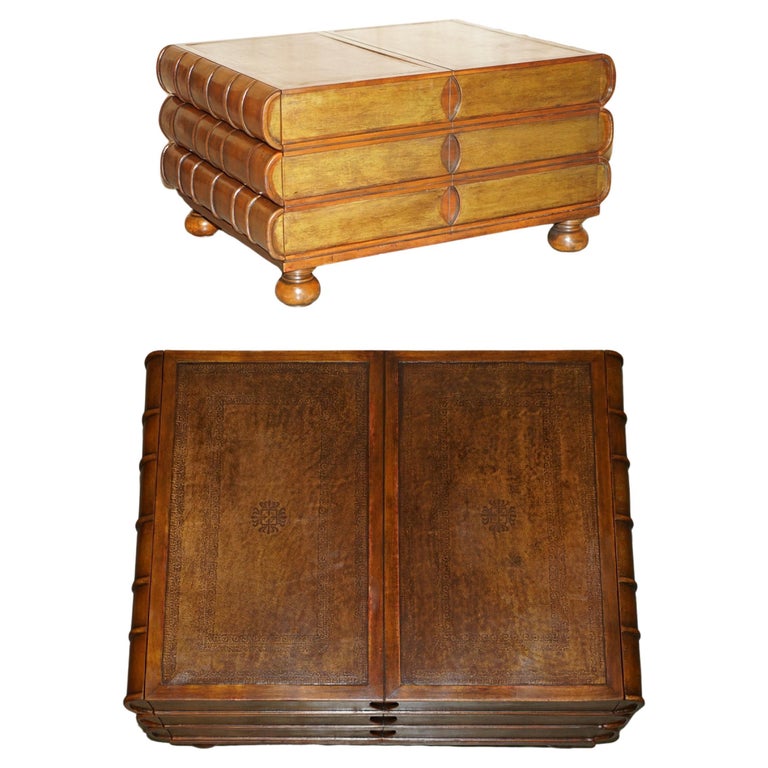 Vintage Maitland Smith Stacked Book Leather Bound 3 Drawer Cocktail ...