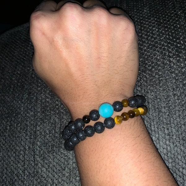 Stacked Bracelets for Men, Stacked Jewelry for Men - Lava Stone ...