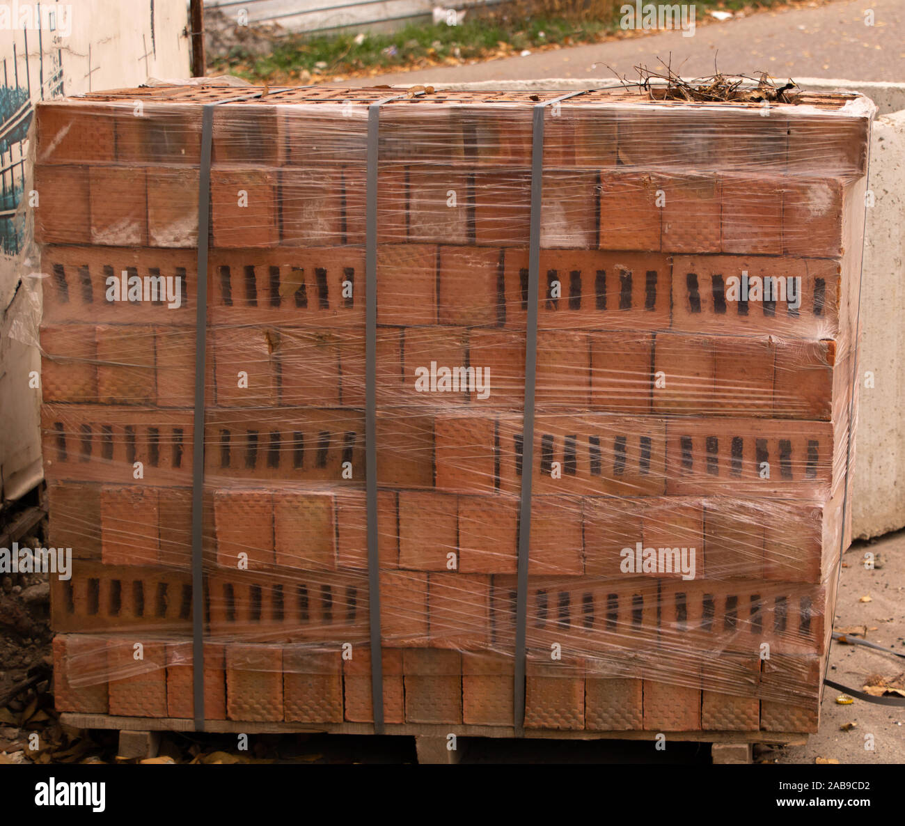 Red ceramic brick closeup stacked. building materials Stock Photo - Alamy