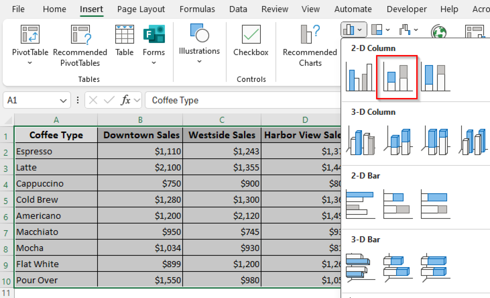 How to make a Column Chart in Excel (Clustered + Stacked)