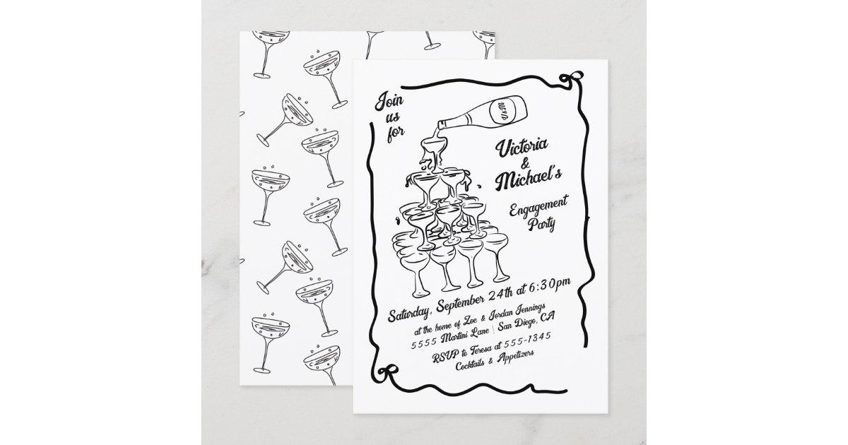 Hand Drawn Champagne Stack Engagement Party Invitation | Zazzle