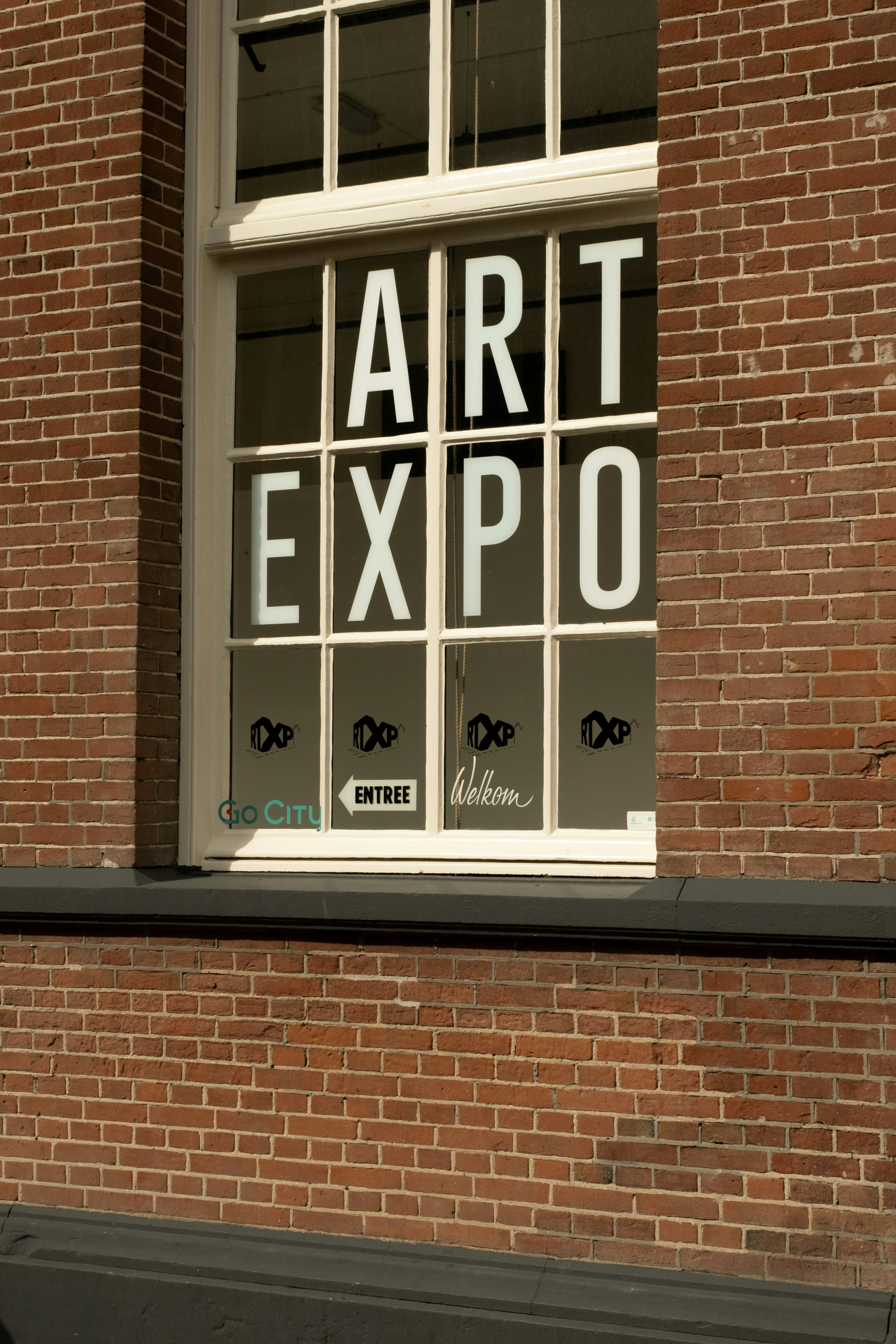 A brick building with a window that says art expo photo – Free Building ...