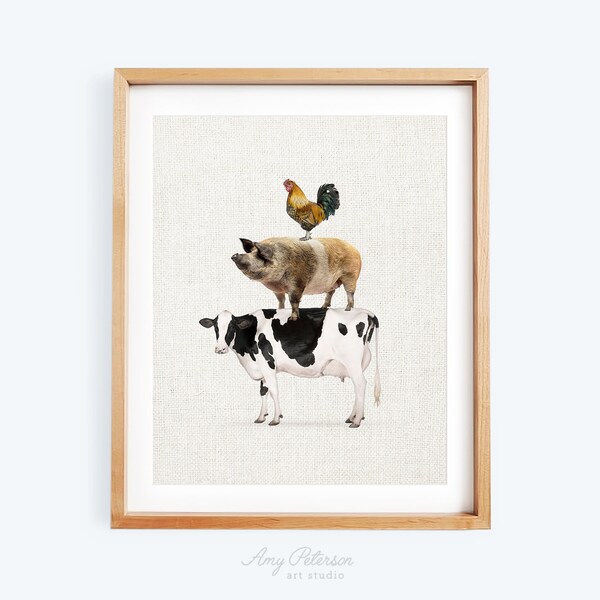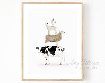 Stacked Farm Animals, Farmhouse Decor, Farm Animal Art, Rustic Style ...
