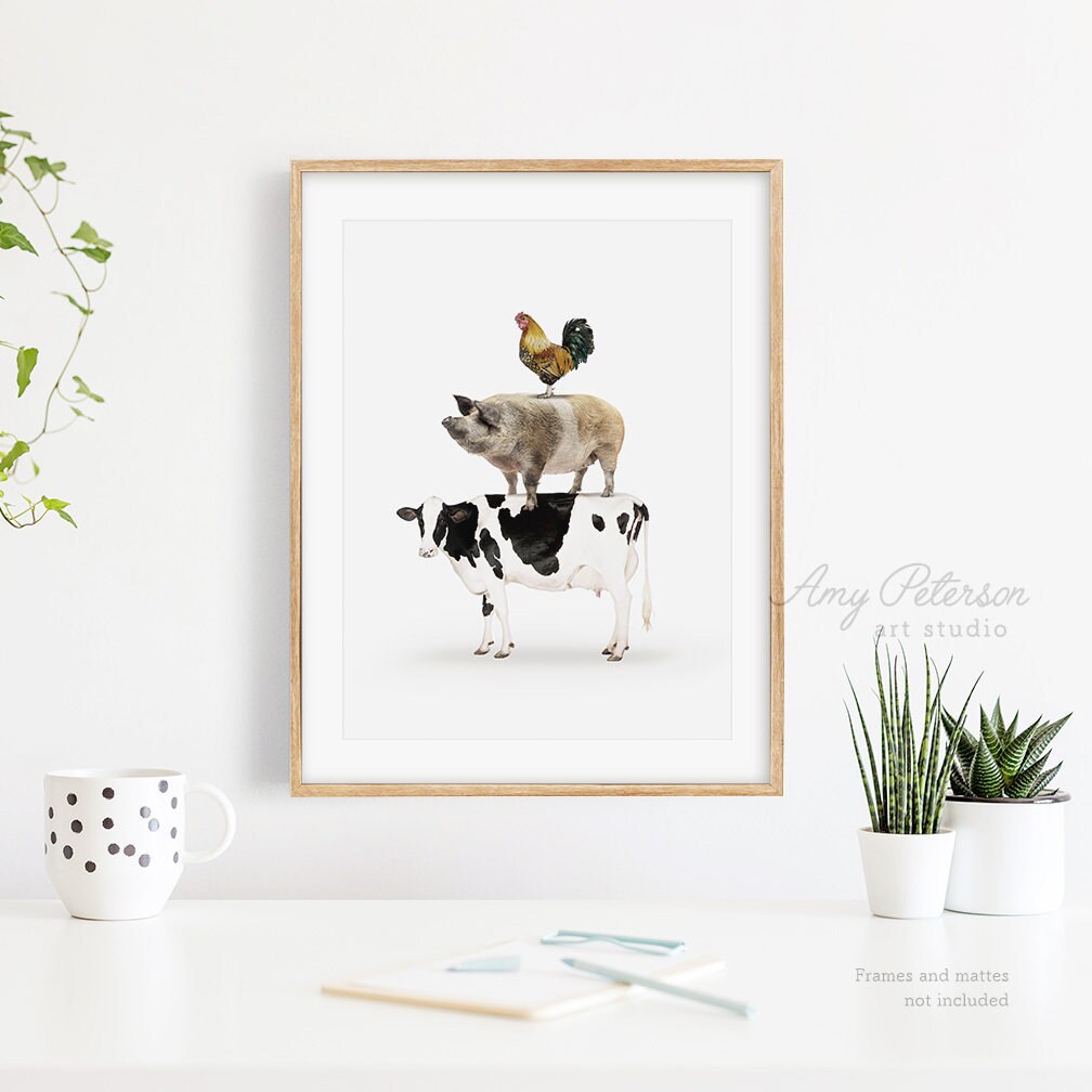 Stacked Farm Animals Farmhouse Decor Farm Animal Art Rustic | Etsy