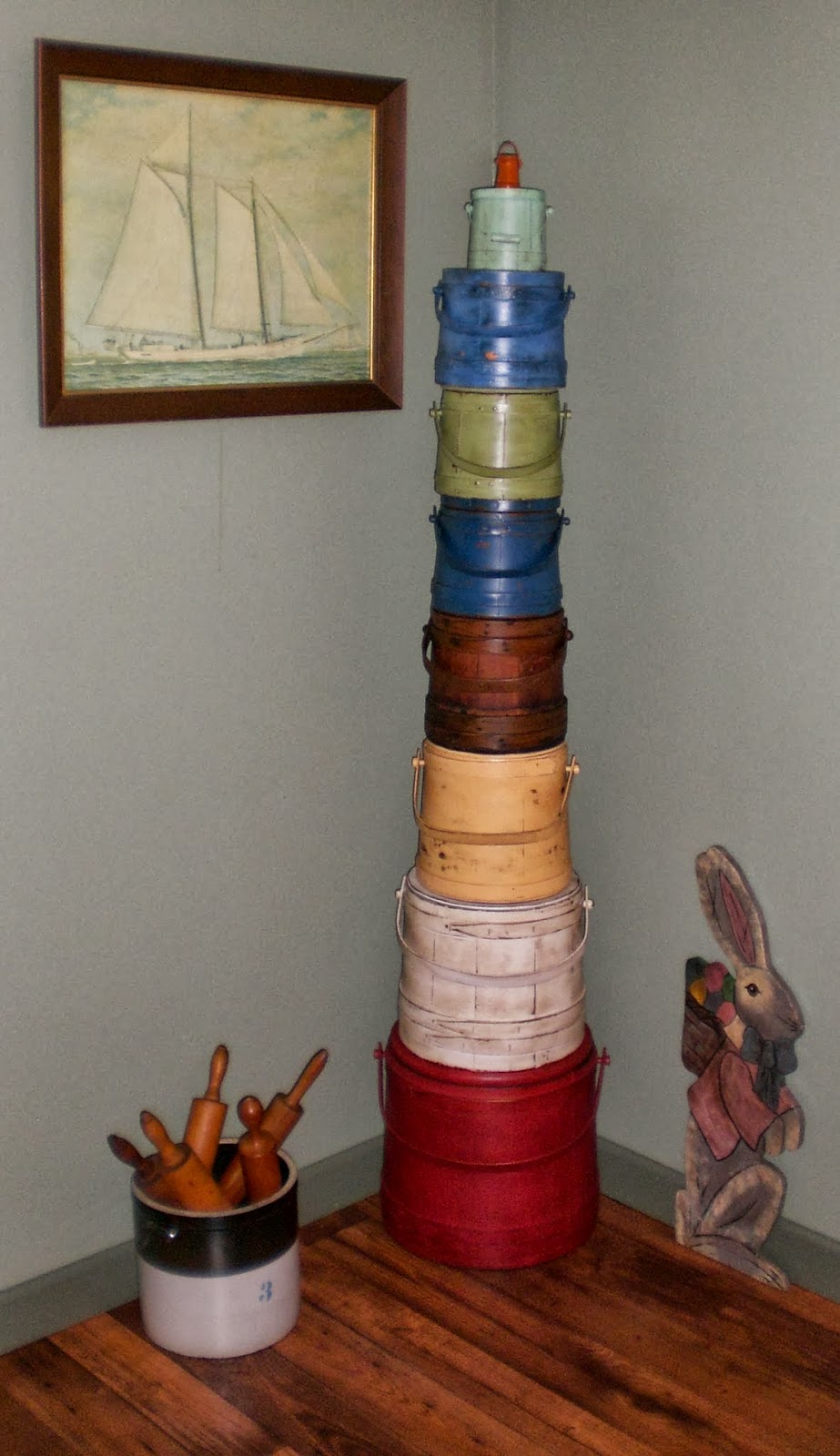 Primitive...stack of olde firkins. | Primitive decorating country ...