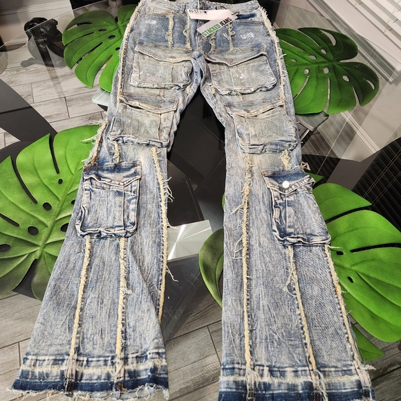 Jean × Streetwear Opium Cargo Flared Stack Jeans, Wide Leg, Bootcut ...