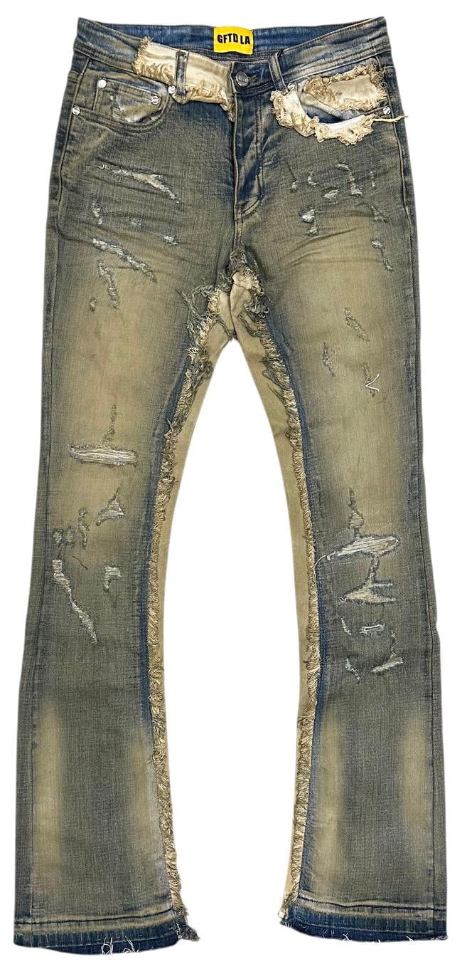 GFTD LA Los Angeles Men's Stacked Flared Jeans Distressed Rip Vintage ...
