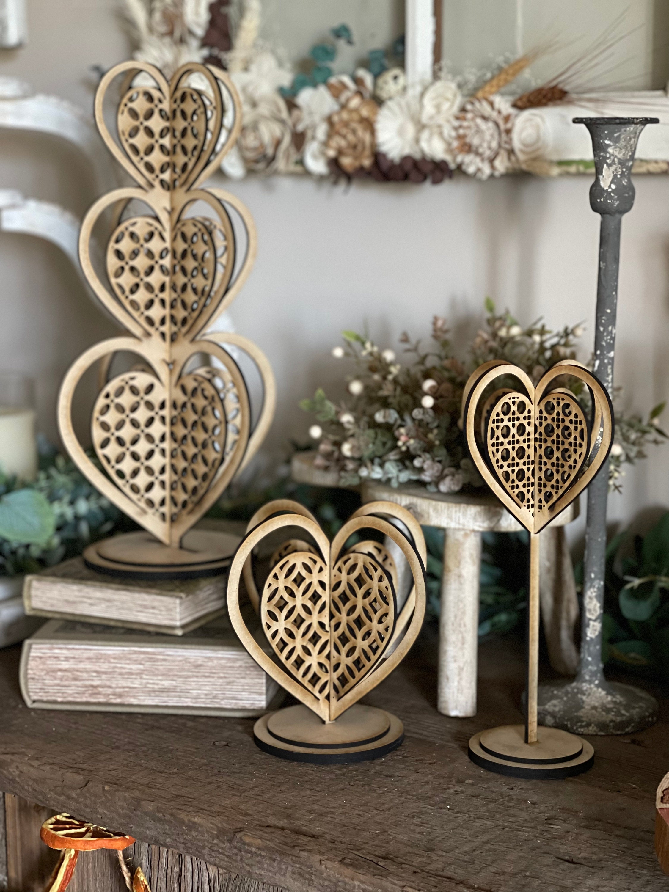 3D Stacked Hearts Farmhouse Style Set of 3 Rattan Cane SVG - Etsy