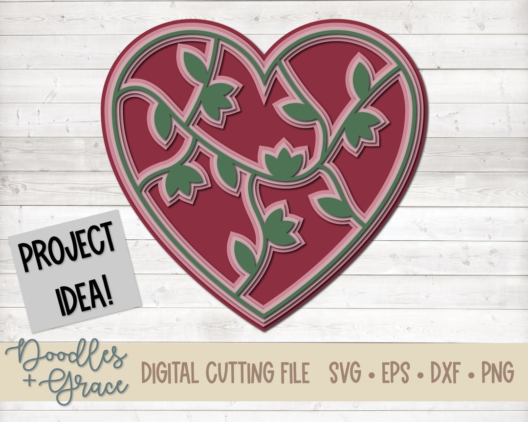 3D Layered Heart SVG Stacked Heart and Flowers SVG Paper - Etsy
