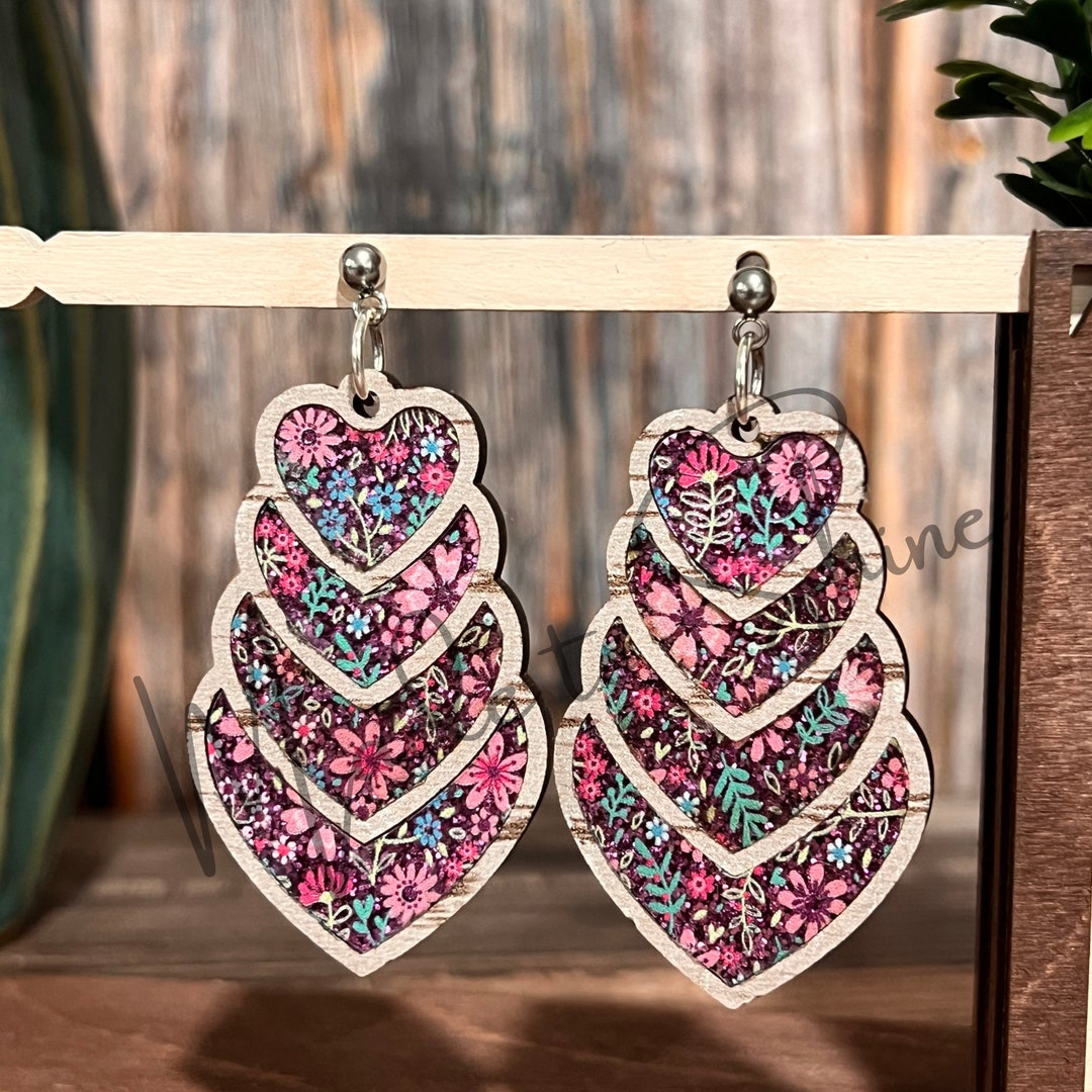 Stacked Heart Earrings SVG Files, Heart Pendant Template, Heart Earring ...