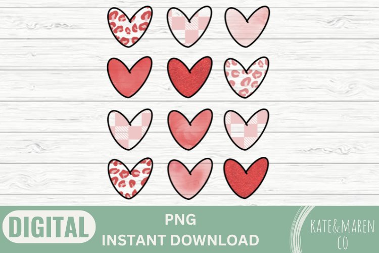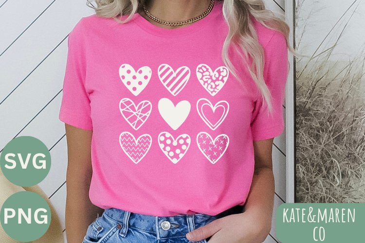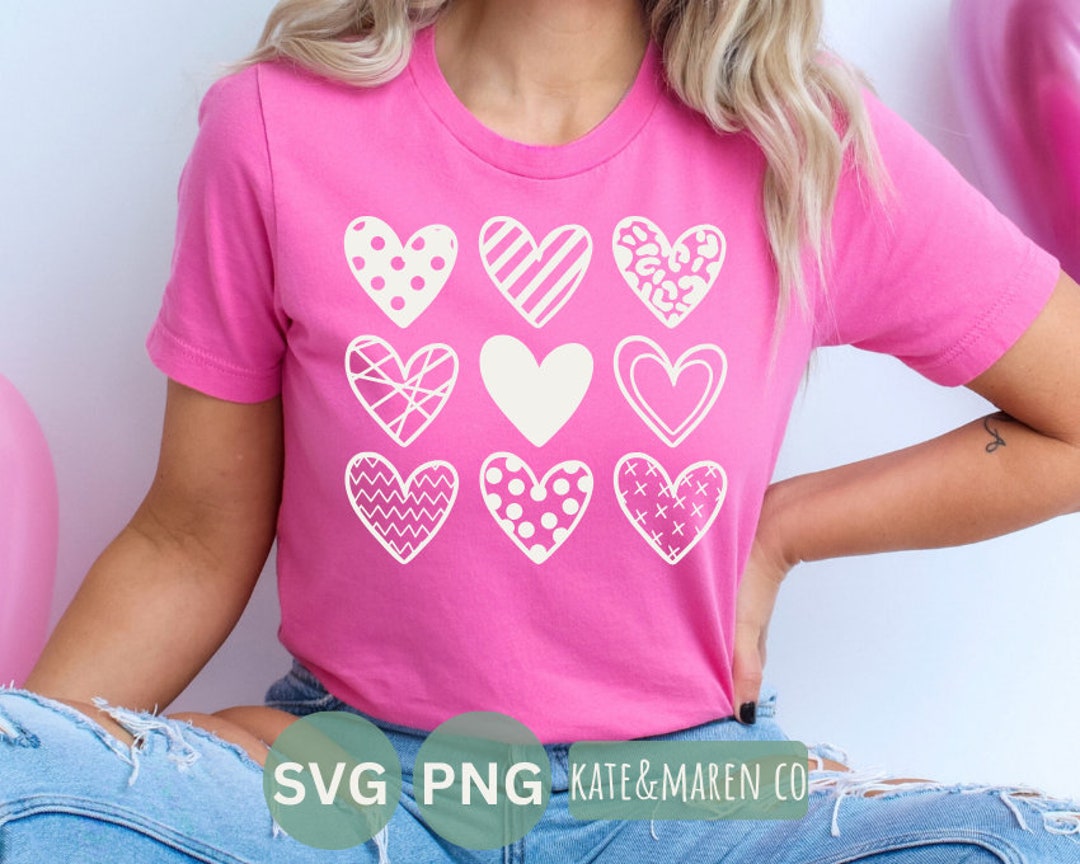 Hand drawn Heart Bundle SVG, Cute Hearts, Love Clipart Print