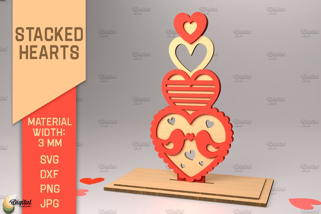 Stacked Hearts Bundle, 3D Laser Cut Layered Hearts, Valentine's Day ...