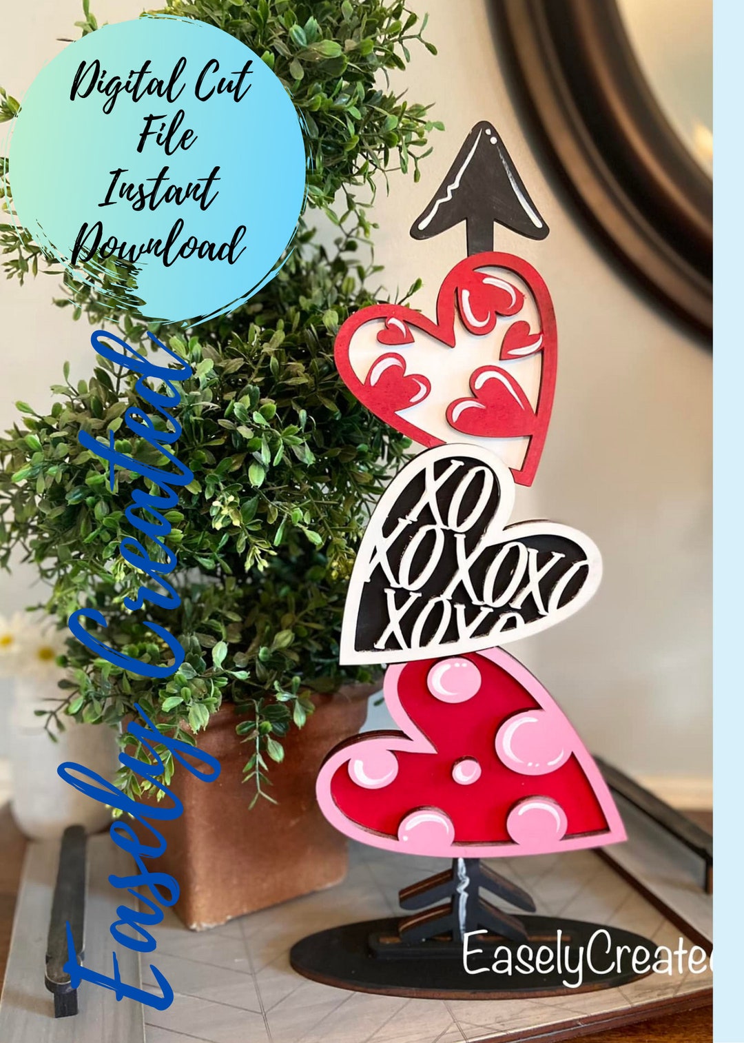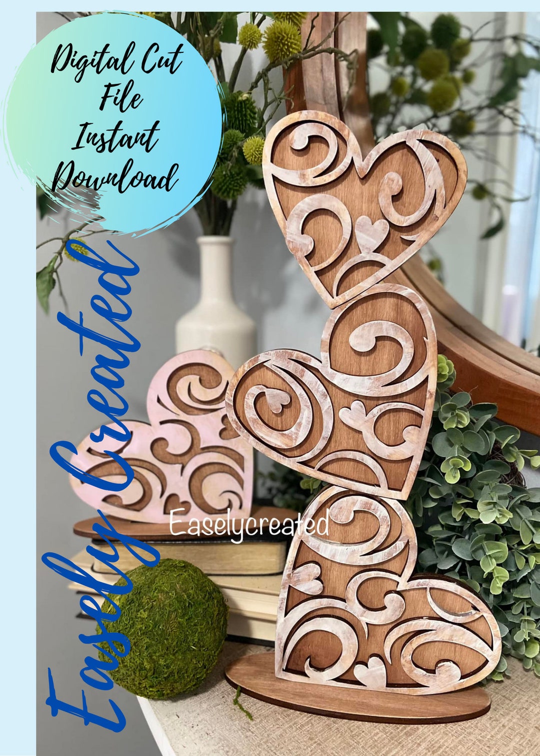 Stacked Hearts, 3D Laser Cut Layered Hearts, Valentine's Day Standing ...
