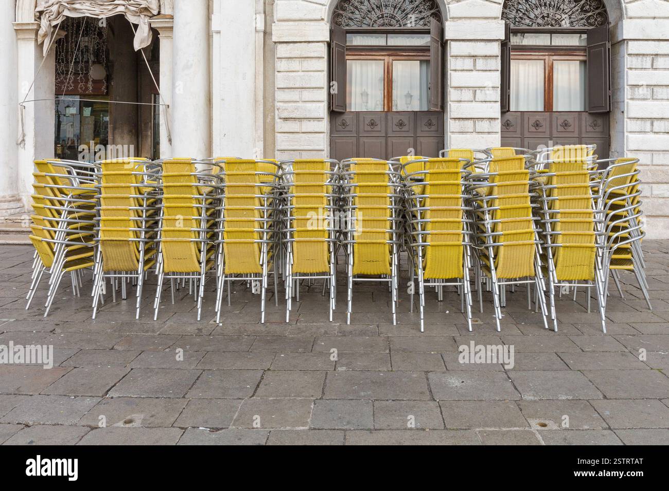 Restaurant chairs stacked hi-res stock photography and images - Alamy
