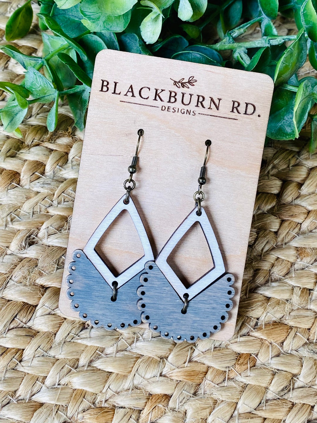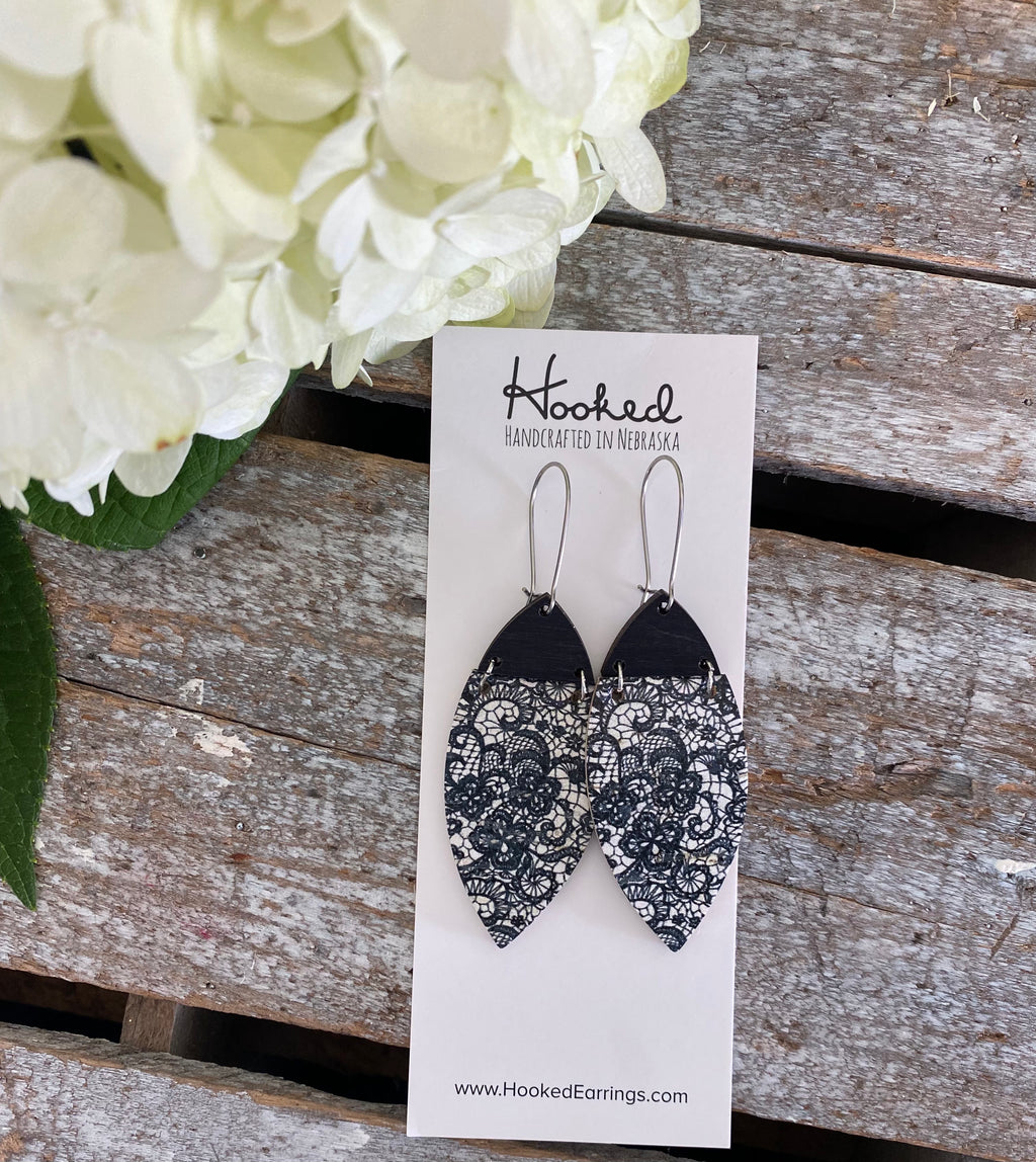 Distressed Navy Stacked Lace With Crystal Wood Earrings ...