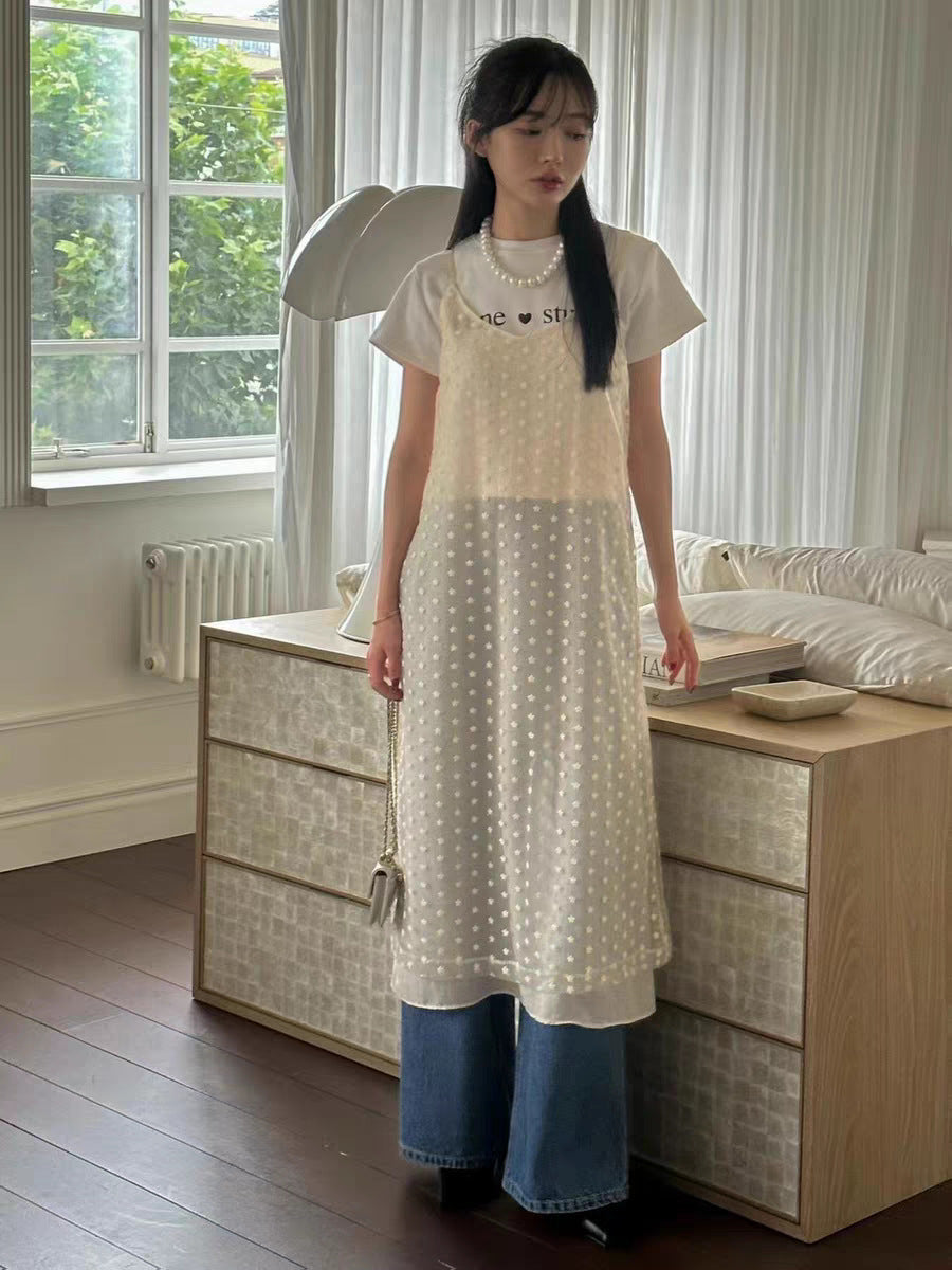 A-line Lace-up Stacked Lace With Camisole Skirt Korean Fashion Style ...