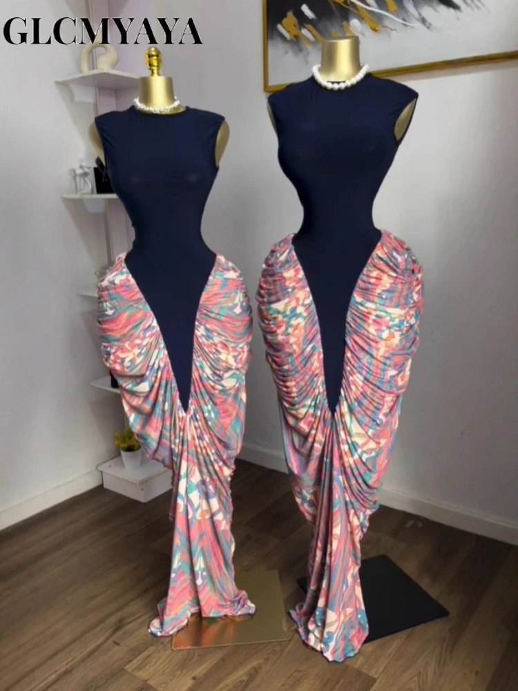 Retro stacked lace pattern skirt for women high waist irregular hem skirt