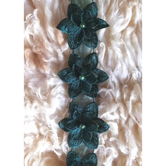 Stacked organdy embroidered lace with pearls (1 roll=4.5m) | Shopee ...