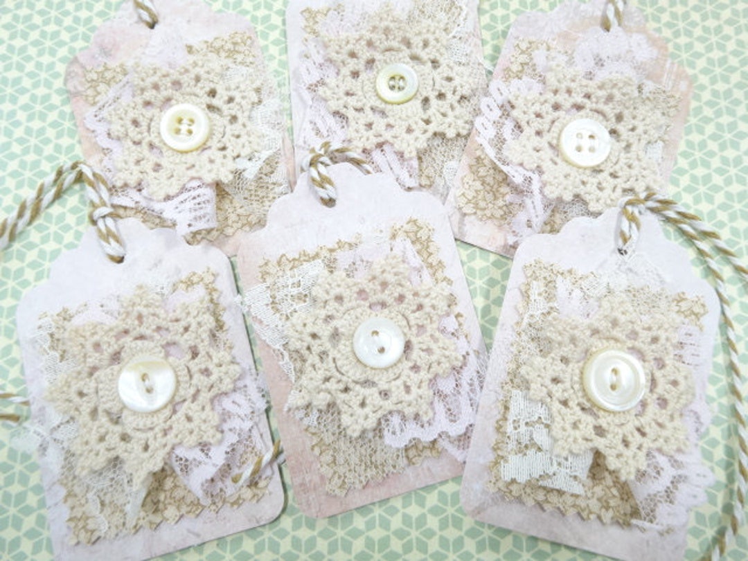 Charming Vintage Layered Stacked Lace Textile Cluster Hang Tags Lot (6 ...