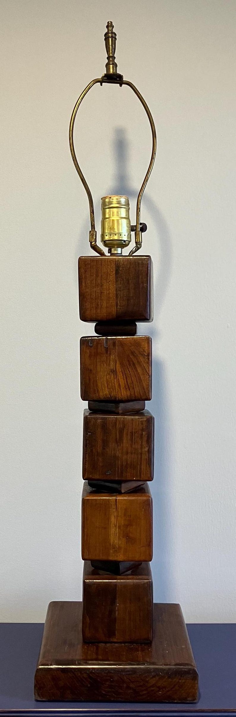 Russel Wright Style MCM Stacked Wooden Cube Table Lamp - Etsy