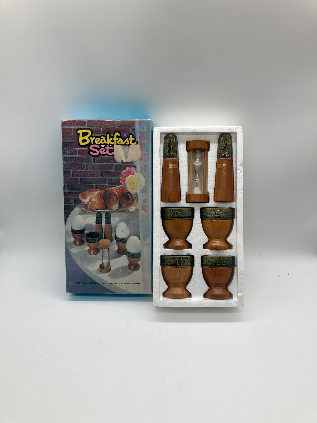 MCM Breakfast Set Original Package Wood Ceramic Avocado Green 7 Piece ...