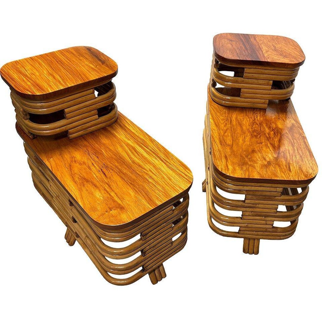 Restored MCM Two-tier Stacked Rattan Side Table W/flame Mahogany Tops ...