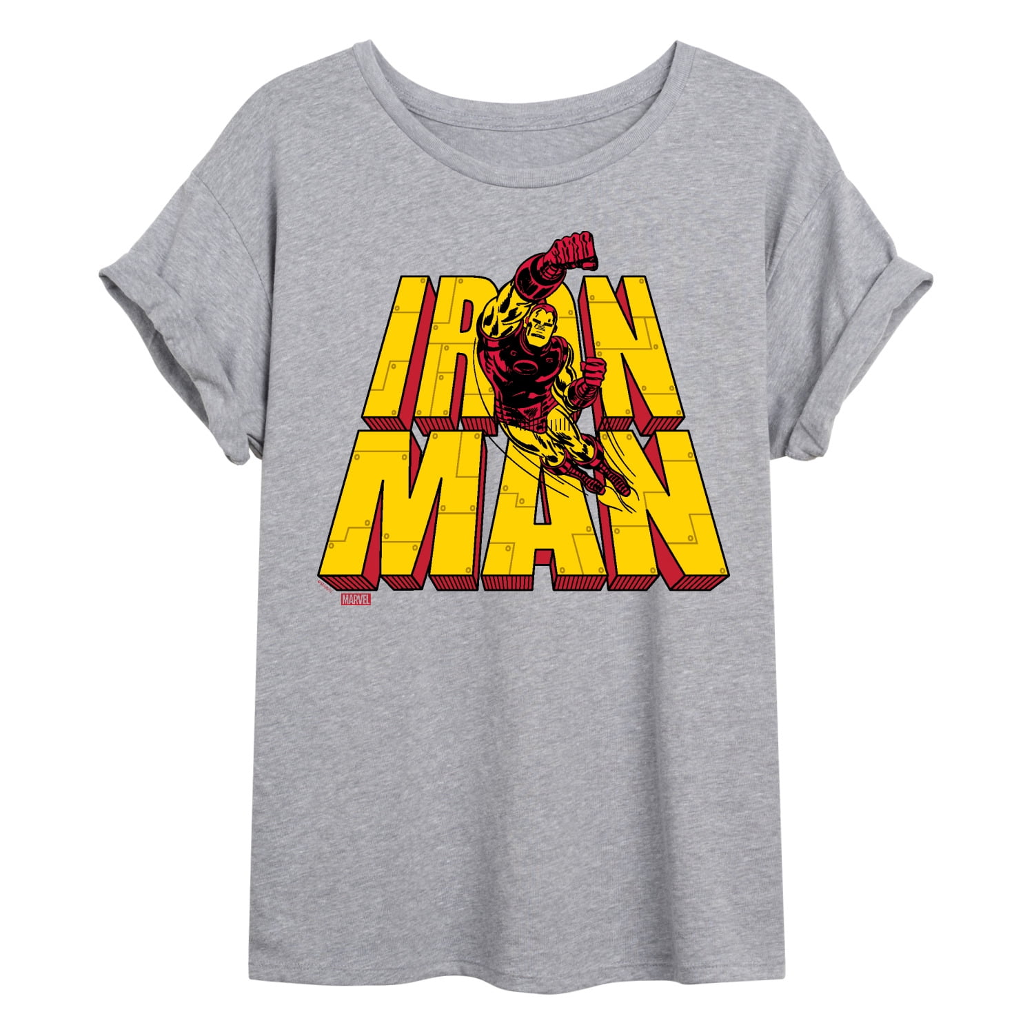 Marvel Iron Man - Stacked Name Oversized - Juniors Fitted Graphic T ...