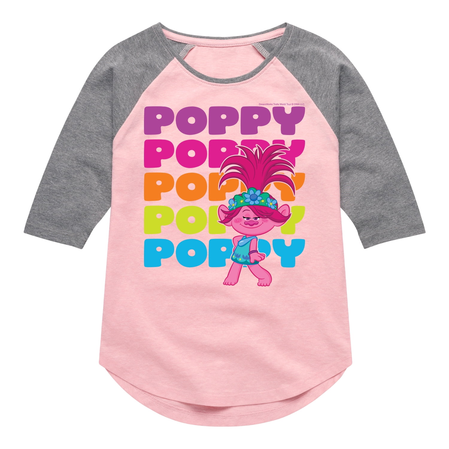 Trolls Poppy Toddler & Youth Girls Raglan T-Shirt, Light Pink Athletic ...