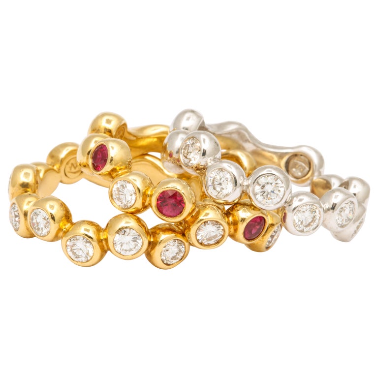 Ruby and Diamond Stacking Bands Set For Sale at 1stDibs