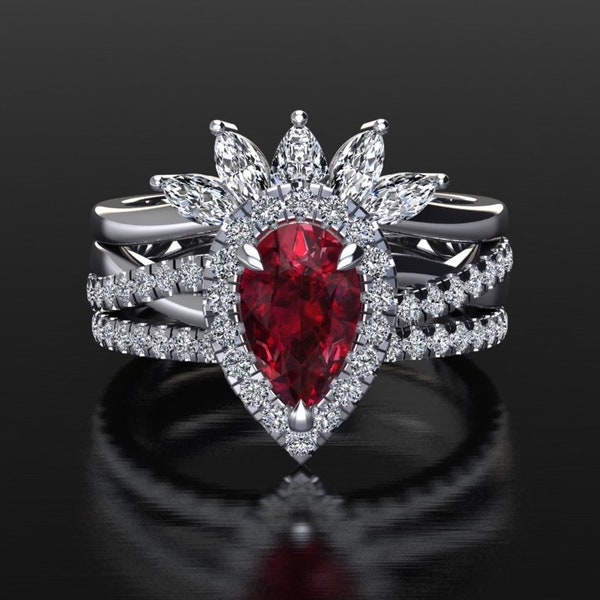 Modern Engagement Stack / Ruby Wedding Set / 3 Ring Stack / Solid Gold ...