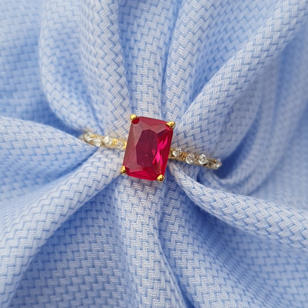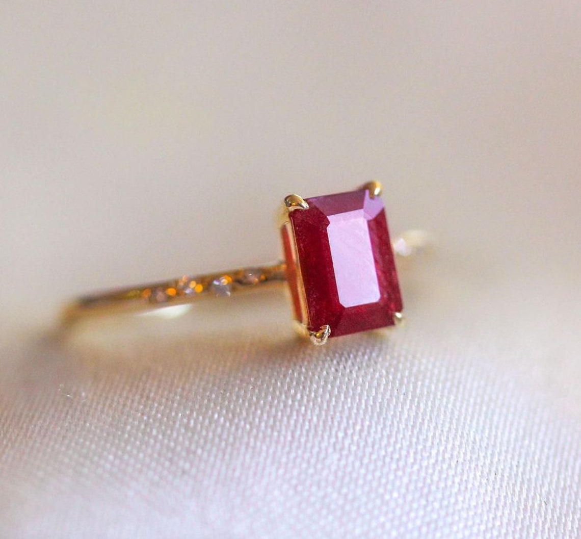 Ruby Stacked Ring Ruby Ring Emerald Cut Ruby Ring 14k - Etsy