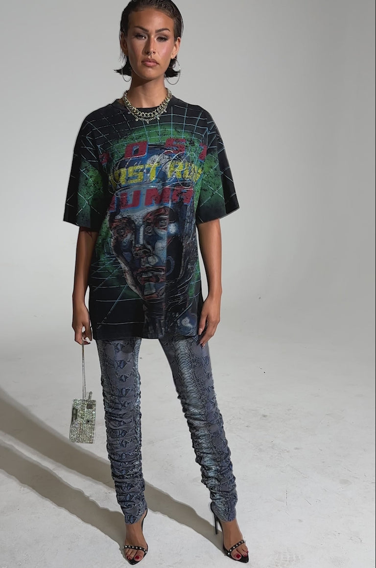 DAYS END RUCHED STACKED SNAKE SKINNY DENIM – AKIRA
